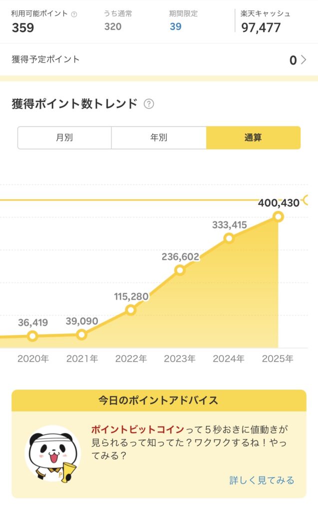 2022年から本格的に楽天経済圏でポイントを貯め始め、気づけば楽天ポイントの通算獲得数が40万ポイントを超えました!